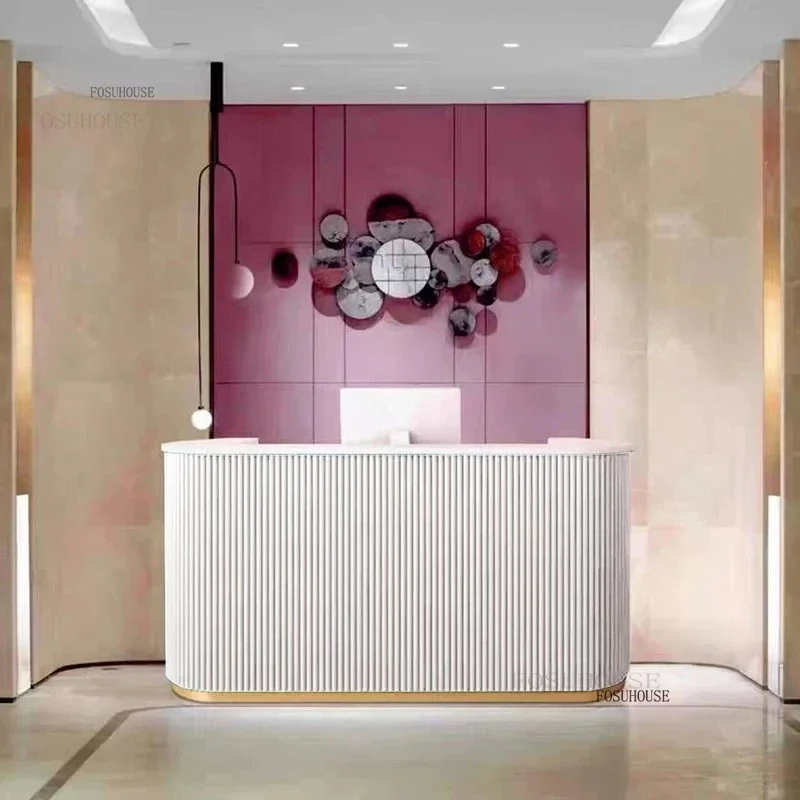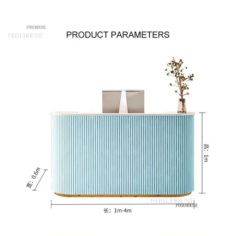 Hign-concerned Chemical: None Installation Method: self-contained General Use: Commercial Furniture Size: 120x60x100cm is_customized: Yes Model Number: 0 Origin: Mainland China Brand Name: FOSUHOUSE Specific Use: Reception Desk Material: Wood Type: Office Furniture Modern Cashier Counter Reception Desks Cloth Store Counter Center Barber Shop Company Reception Desks for Commercial Furniture